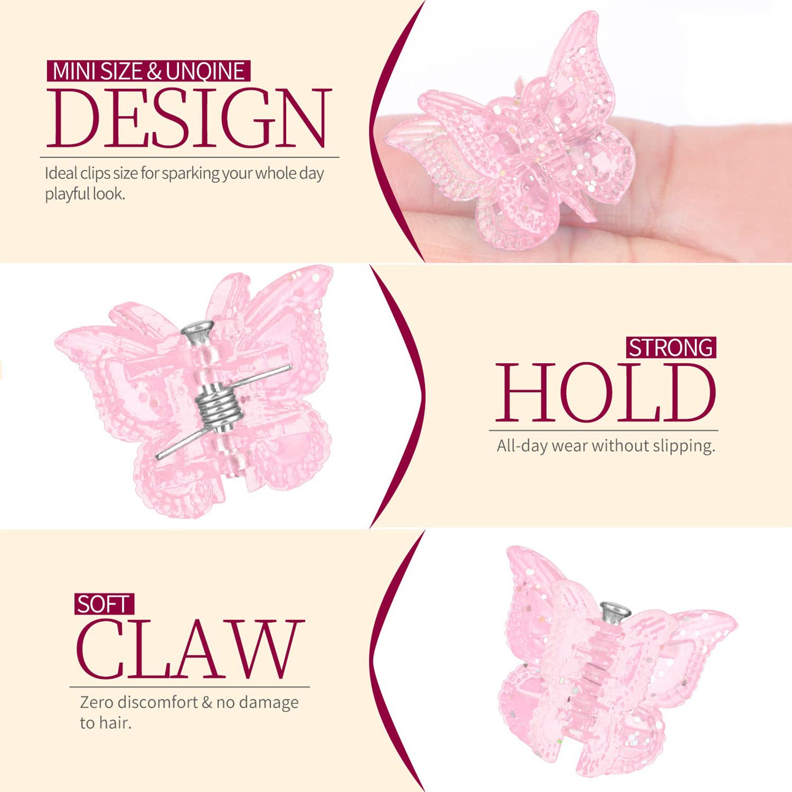 Glitter Mini Butterfly Hair Clips Set